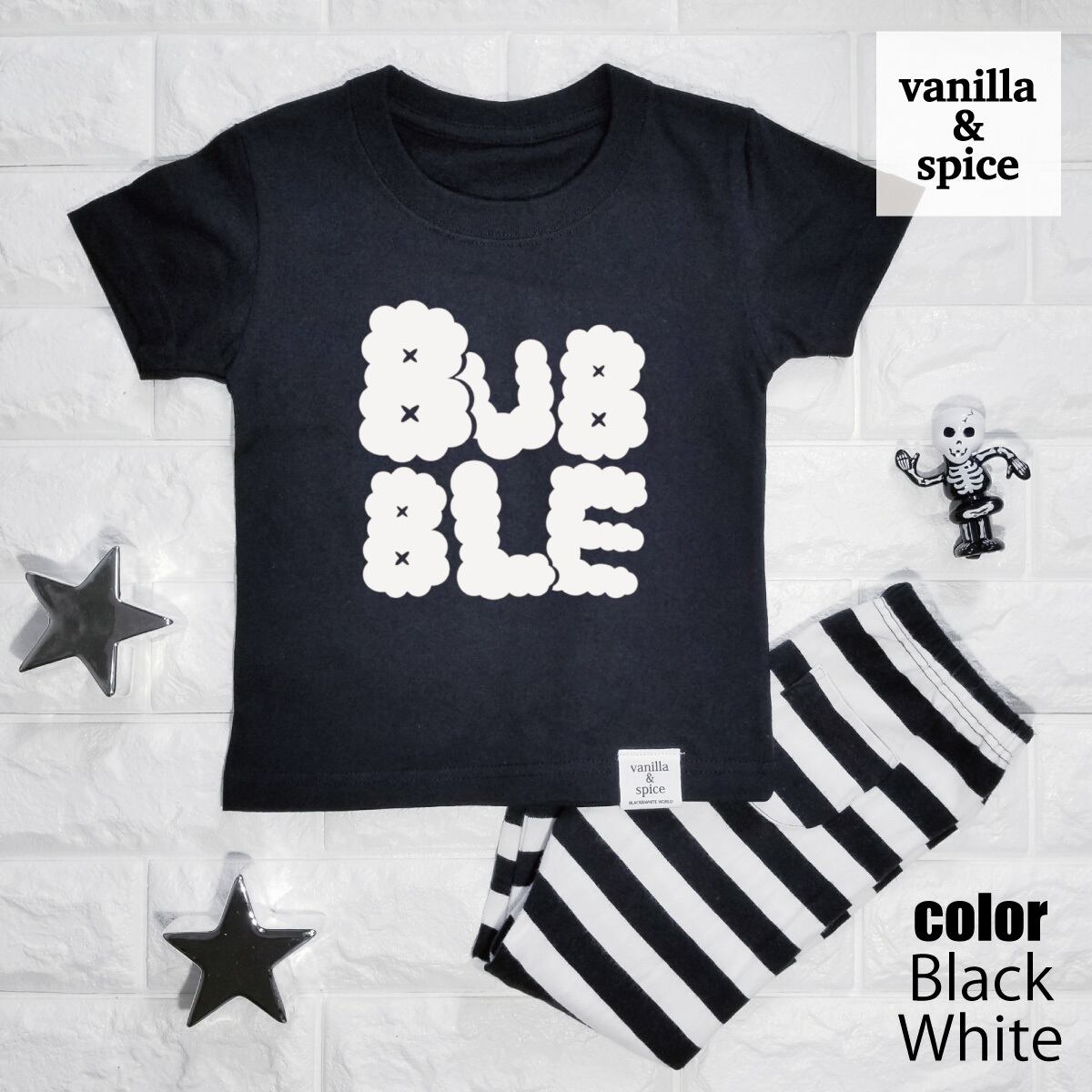 バブル ロゴ プリント 半袖 Tシャツ ブラック キッズ 子供服 vanilla&spice モコモコ シンプル
