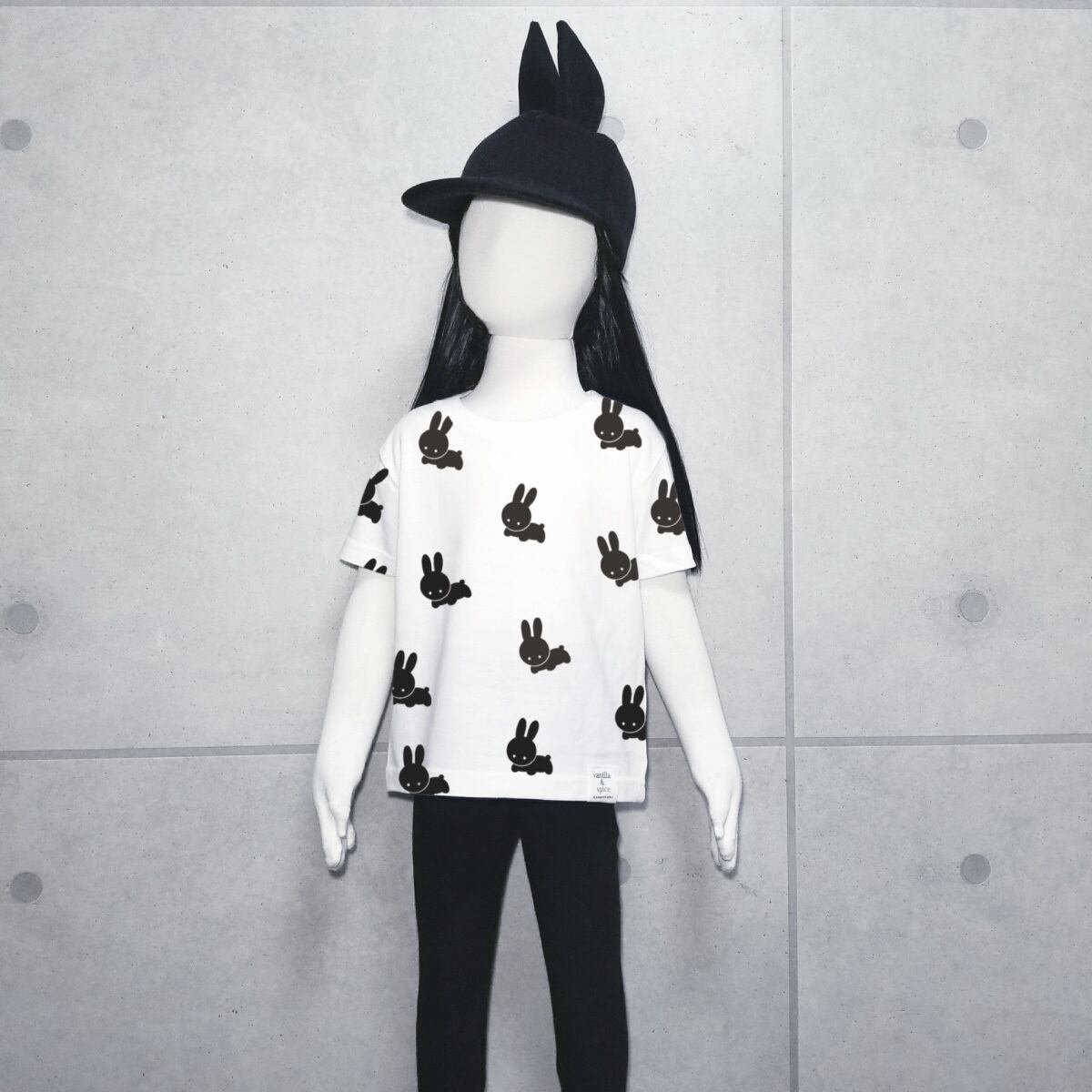 ラビット 柄 プリント 半袖 Tシャツ ホワイト キッズ 子供服 vanilla&spice アニマル ウサギ バニー