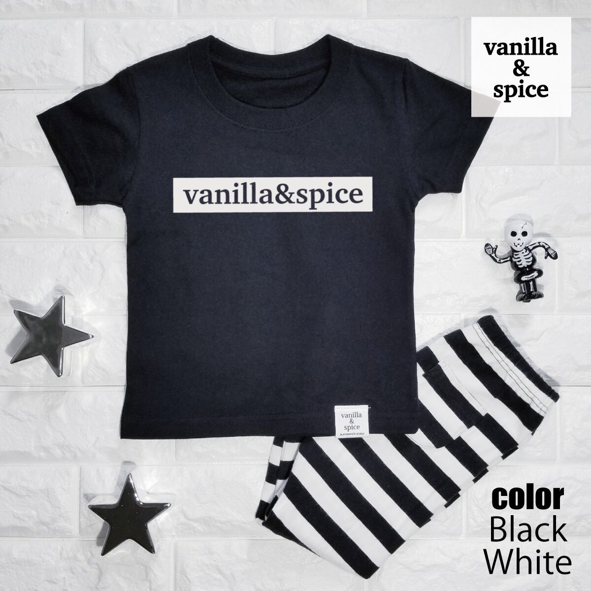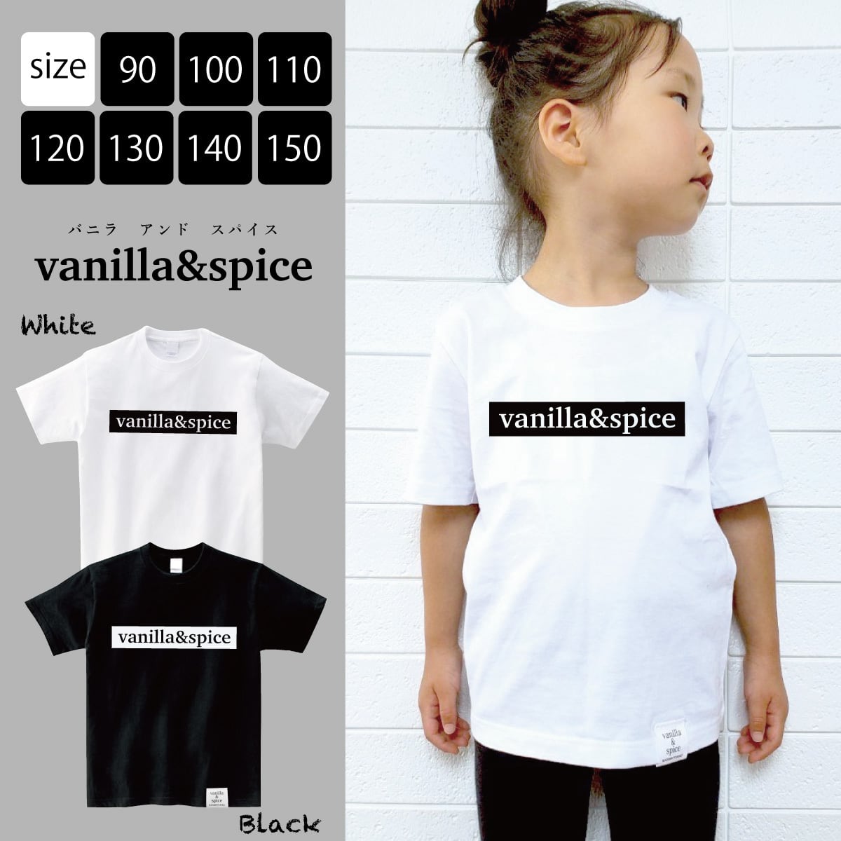 プリント 半袖 Tシャツ LOGO タイプB ロゴ ブランドネーム ロゴT ブラック ホワイト 子供服 キッズ vanilla&spice バニラ&スパイス