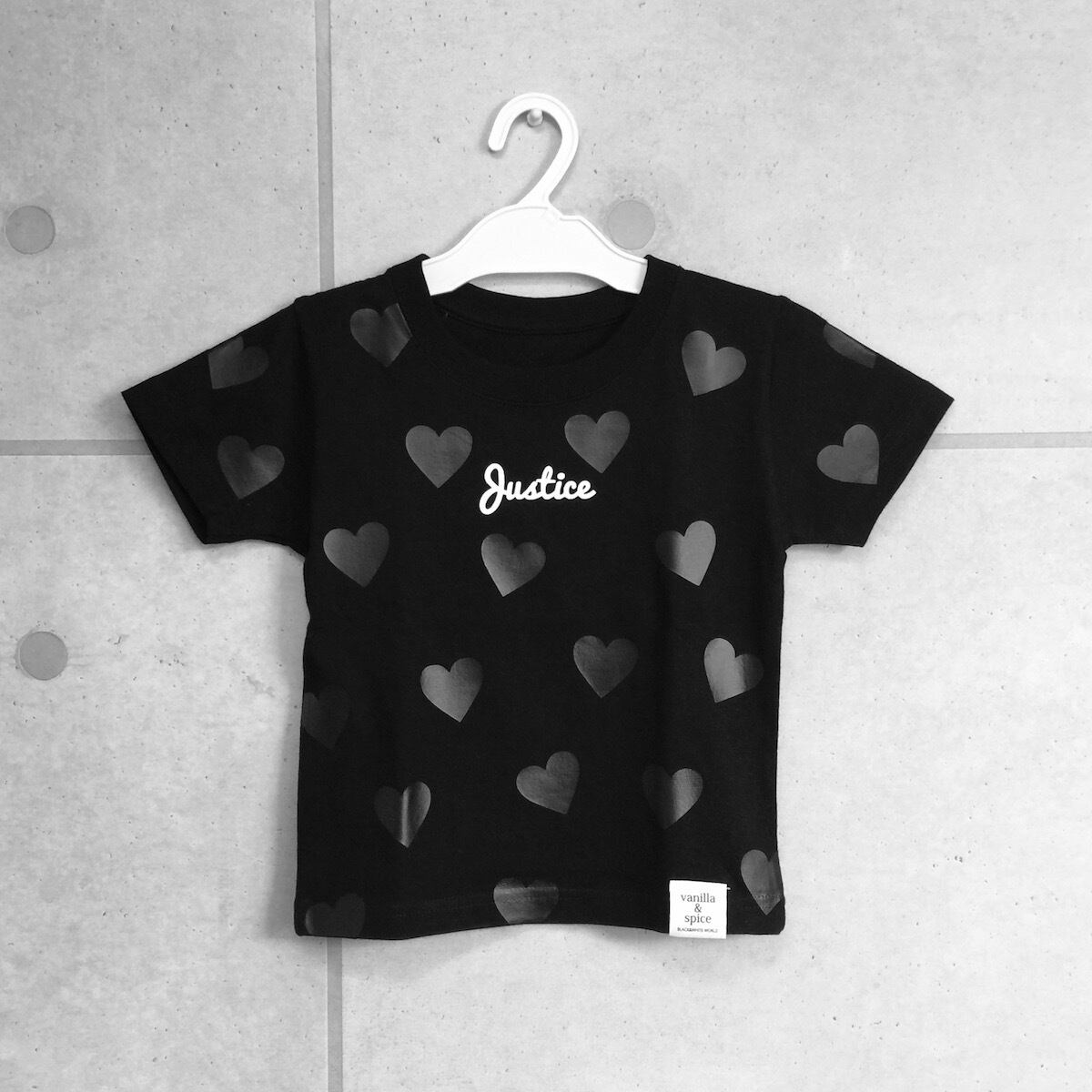 キッズ 子供服 vanilla&spice ハート柄 プリント 半袖 Tシャツ ロゴ ホワイト ブラック