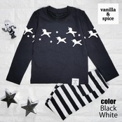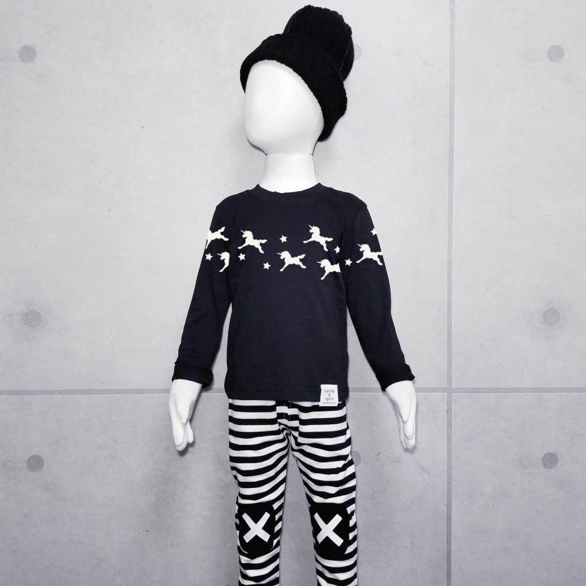 ユニコーン プリント 長袖Tシャツ ロンT ブラック キッズ 子供服 vanilla&spice ポニー ペガサス
